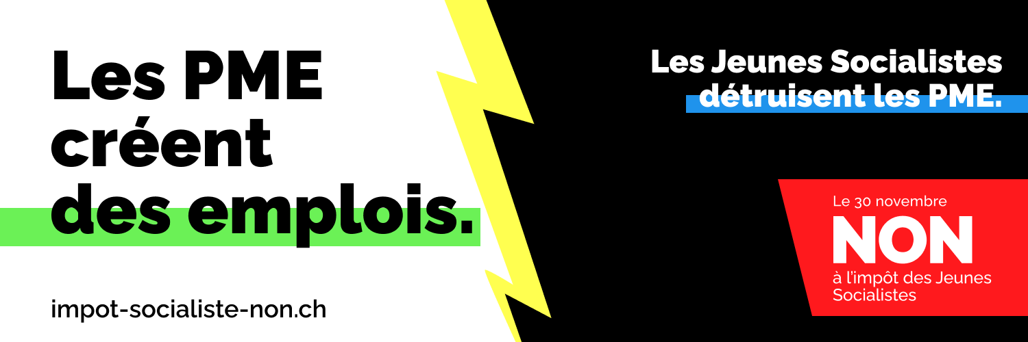 Les PME forment l’épine dorsale de la Suisse. L’initiative de la Jeunesse socialiste détruit leur avenir. Agissez maintenant et montrez votre solidarité avec les PME et les entreprises familiales de notre pays.